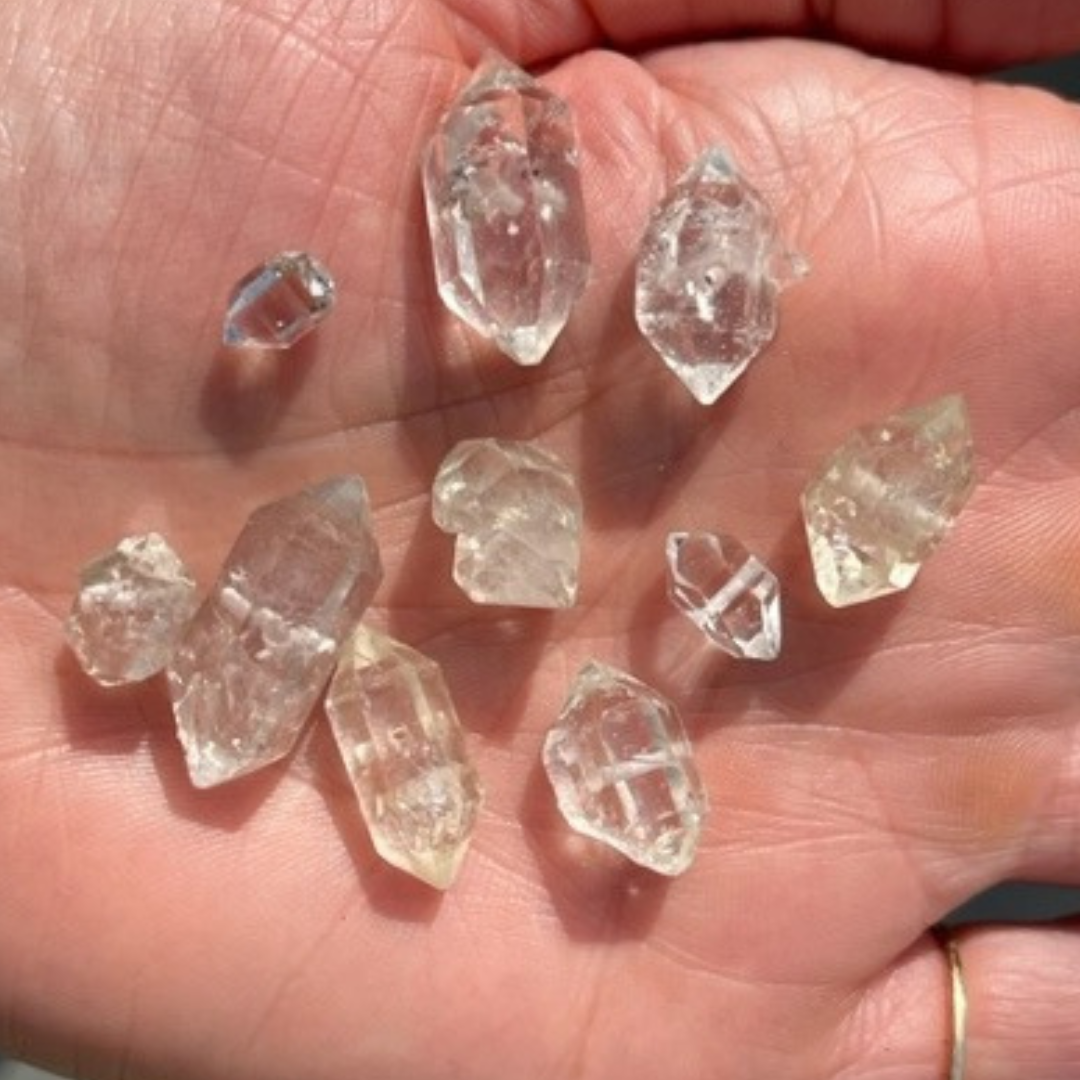 Herkimer diamonds are double terminated (pointed) Quartz crystals.
